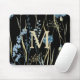 Monogram Floral Light Blue & Gold on Black Mouse Pad