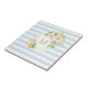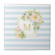 Monogram Floral Shabby Chic Pastel Blue Stripes Ceramic Tile