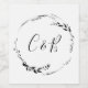 Monogram Floral Wreath White Script Wedding Wine Label