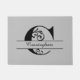 On this distinctive door mat, your name is in script at the center of a divided flourish letter C. The name and letter are in black, and shown on a medium to light gray background. You may change the background color, if you'd like, by choosing to Edit Design. Elegance for your entryway!