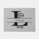 On this distinctive door mat, your name is in script at the center of a divided flourish letter L. The name and letter are in black, and shown on a medium to light gray background. You may change the background color, if you'd like, by choosing to Edit Design. You may also change the font of the name. Elegance for your entryway!