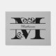 On this distinctive door mat, your name is in script at the center of a divided flourish letter M. The name and letter are in black, and shown on a medium to light gray background. You may change the background color, if you'd like, by choosing to Edit Design. You may also change the font of the name. Elegance for your entryway!