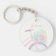 Monogram Flower Bicycle Wishing Great Day Keychain. Pink bicycle with floral basket. Pastel flowers, berries and leaves (pink, blue, turquoise, golden). Golden monogram. Back side: custom text, loving or encouraging words (now "Have a great day my love!" but you can change it to whatever you want to say to your beloved one or to yourself daily) and floral decor. Modern, cute & romantic.