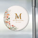 Introducing our Monogram Forest Mushrooms Flowers Floral botanical magnet. Featuring watercolor illustration of mushroom, strawberry, flowers on near white background. And editable text that can be personalized to add unique touch. Suitable as housewarming or wedding gifts.
