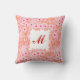 Script monogram frames with a trellis of flowers and leaves in shades of soft pink, peach and apricot, with deep pink flower centers and a creamy white background