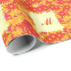 Script monogram frames with a trellis of autumn hued flowers and leaves in shades of gold, red, fuchsia and brown with a creamy white background