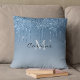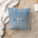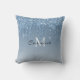 Monogram Frozen Ice Blue Dripping Glitter Metallic Throw Pillow