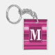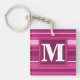 Monogram fuchsia stripes keychain