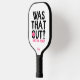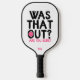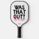 Monogram Funny Typography Pickleball Player Pickleball Paddle features the text "Was that out? Are you sure?" in modern script typography with your personalized name below. Perfect gift for clubs, Christmas, birthday, Mother's Day, Father's Day, best friends, sister and more. Designed by ©Evco Studio www.zazzle.com/store/evcostudio