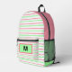 Monogram Geometric Stripes Pink Green White Printed Backpack