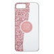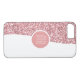 Monogram smartphone case with simulated pink sparkling glitter digitally printed on the cover along with color coordinated monogram emblem in pink and white you can personalize and make your own. Designed for ladies or girls who like a little glitz and glam on their cellphone cover.
