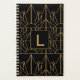 Monogram gold and black art deco pattern planner . A gold and black with white Great Gatsby style design.
