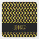 Monogram gold and black quatrefoil pattern square sticker
