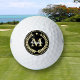 This attractive golf ball features a gold laurel leaf wreath with your monogram at the center. Across the monogram is your name in white script. At the top of the design is a small gold star. Everything is placed on a dramatic black background.