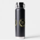 This classy beverage bottle features a gold laurel leaf wreath with your monogram at the center. Below the monogram is your name (first or last...your choice!) in matching gold. At the top of the design is a small gold star. The image is repeated three times around the bottle.