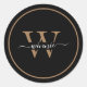 Monogram Gold Minimal Elegant Black Script Name Classic Round Sticker