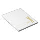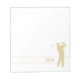 This distinctive golf themed note pad features a gold silhouette golfer in full swing. On the lower third is your monogram in matching gold framed by thin gold lines. The text and image are placed on a white background.