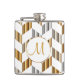 Monogram - Gold, Silver & White Chevron Design Hip Flask
