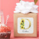 Monogram gold lettering with sunflowers initial sticker, perfect gift for Christmas, birthday, or other celebration for a daughter, sister, aunt, mother, or friend. Customized with monogrammed the gold letter D and a name on a birch wood background. Other letters available in my shop.