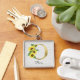 Monogram gold lettering with sunflowers initial keychain, perfect gift for Christmas, birthday, or other celebration for a daughter, sister, aunt, mother, or friend. Customized with monogrammed the gold letter O and a name on a birch wood background. Other letters available in my shop.