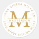 "Gold" (a sandy yellow) color text on white sticker. New darker version.