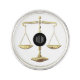 Design with scales of justice symbol and personalized monogram.