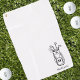 This elegant monogram golf towel features a simple black and white outline of a golf bag filled with clubs, placed on the front bottom right corner. The design includes a classic serif font initial monogram on the bag, blending seamlessly into the overall look. Below the monogram, the full name is displayed in a matching serif font for a sophisticated touch. The monogram is currently in a dark gray, almost black, but can be customized to your preferred color.