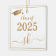 Celebrate the graduate's accomplishment in style with this trendy graduation ornament. Design features "Class of 2025" in gold font with graduation cap on a clean white background. Personalize this product by adding year of graduation and name initial monogram. Easy to customize. Congratulations!