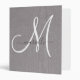 Monogram Gray White Script Faux Linen 3 Ring Binder