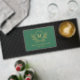 Home bar personalized surname green and gold bar mat features an elegant gold crest with a simple monogram on an editable green color background. This classic bar mat includes your custom est year.