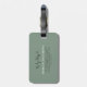 This elegant monogram golf bag or luggage tag features a simple golf bag illustration filled with clubs on a sage green background on the front. The design includes a classic serif font initial monogram on the bag in white, blending seamlessly into the overall look. Below the monogram, the full name is displayed in a matching white serif font for a clean and sophisticated touch.