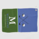 To personalize with name and initial of the golfer... a stylish monogram design on a green and blue golf-towel