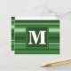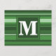 Monogram green stripes postcard