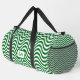 Monogram Green & White Wavy Stripes Psychedelic Hypnotic Duffle Bag. All-over-print tote bag with a wavy design in SVG format. Much like the ocean or a curvy zigzag or Chevron art. Edit to change the colored background and wavy lines to different colors. You can also choose different bag types from the pulldown. If using the pulldown, please click "Edit" to check that the pattern covers all layers.