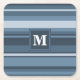 Monogram grey-blue stripes square paper coaster