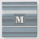 Monogram grey-blue stripes stone coaster