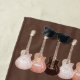 The perfect monogram design for the cool rock star in your life just personalize by adding a name and initial. Three hand drawn semi acoustic, electric guitar illustrations in country rustic style translucent white, light brown and dark brown hues repeating pattern on a brown background. Perfect for the beach where creative musical dreams are born. Ideal for musicians, music lovers especially guitarists. Musical instrument original artwork by artist Catherine Sweetman