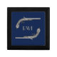 Two antique pistols atop this pretty box with your monogram. Great dark, Navy blue background makes it a very masculine piece.