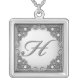 Elegant scrolled Monogrammed Necklace with an embossed look and pewter-like scroll-work.