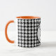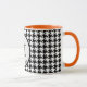 A classic black and white houndstooth print, with a modern initial and your text below it. This is an 11oz. combo color beverage mug, also available in 15oz. size. Choose from 9 colors for handle and inside. Easily change initial and text using the Template provided. The little witch icon can also be removed using the Design Tool in the Template to use year-round. Makes a perfect Halloween beverage mug or change the combo color for an everyday mug. See "About This Product" at side for more information.