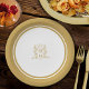 Monogram heart crown crest gold wedding paper plates