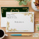 This design features a gold scroll heart on an emerald green background on the inside flap, borders on front with heart monogram on back flap.