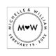 Modern wedding stamp with your names and wedding date in a circle around your monogram and a cute little heart.