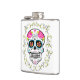 Show your style with this chic trendy hipster Sugar Skull flask. A sweet sugar skull with various flowers and roses with a funky urban cool design featuring ornate swirls and vintage texture patterns. A frame of vines surrounds the skull. Celebrate Mexico's Day of the Dead or Dia de los Muertos with this unique skeleton calavera. Perfect for party favor or best man and groomsmen gifts. .Click Customize It to add monogram or name and create your own unique one of a kind design! By Marisu Valencia™.