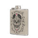 Show your style with this chic trendy hipster Sugar Skull flask. A sweet sugar skull with various flowers and roses with a funky urban cool design featuring ornate swirls and vintage texture patterns. A frame of vines surrounds the skull. Faux burlap texture. Celebrate Mexico's Day of the Dead or Dia de los Muertos with this unique skeleton calavera. Perfect for party favor or best man and groomsmen gifts. .Click Customize It to add monogram or name and create your own unique one of a kind design! By Marisu Valencia™.