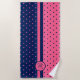 Monogram Hot Pink and Navy Polka Dot Pattern Beach Towel