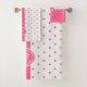 Monogram Hot Pink and White Polka Dot Pattern Bath Towel Set