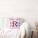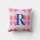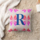 Monogram Hot Pink Bright Orange Retro Flower Throw Pillow