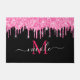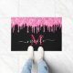Monogram Hot Pink Dripping Glitter Black Door Mat