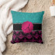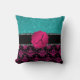 Monogram hot pink glitter damask turquoise glitter throw pillow
